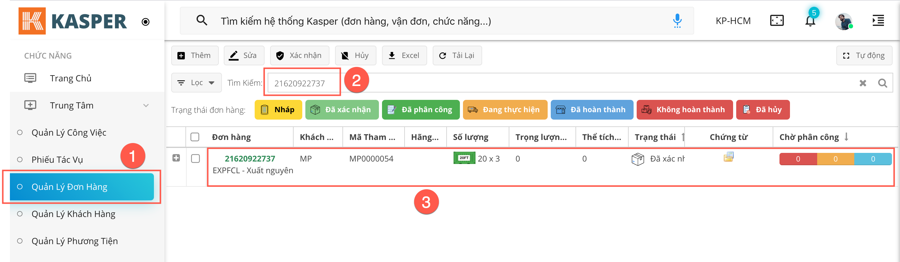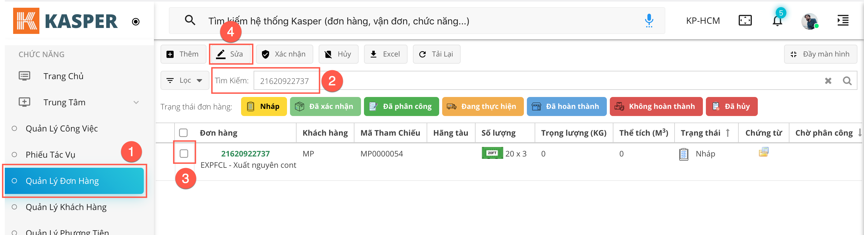 - (2): Tiến hành tìm kiếm đơn hàng cần chỉnh sửa