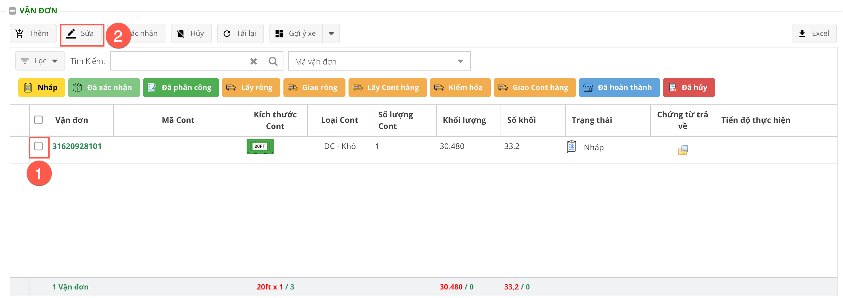 - (1): Bấm chọn vận đơn vừa chỉnh sửa