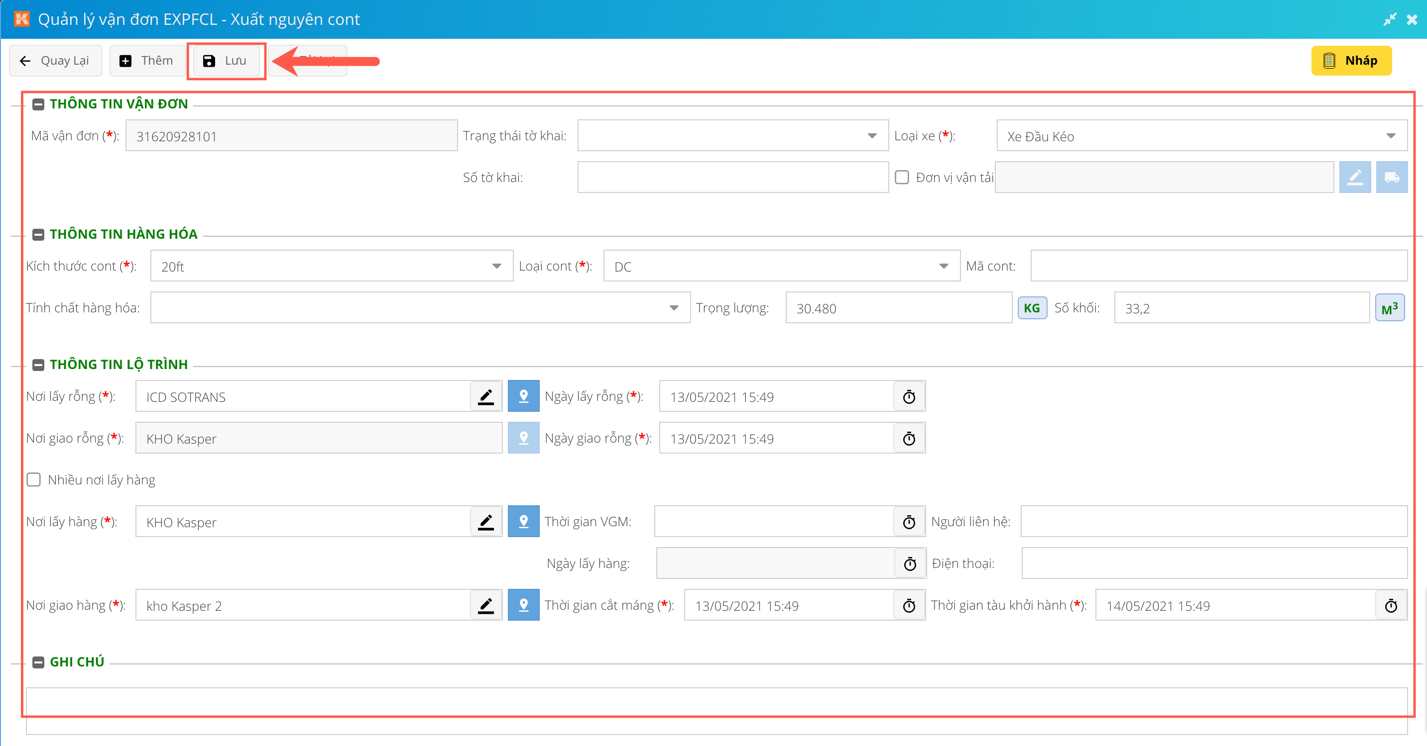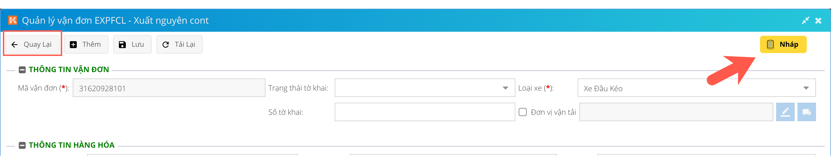 - Vận đơn vẫn còn ở trạng thái Nháp