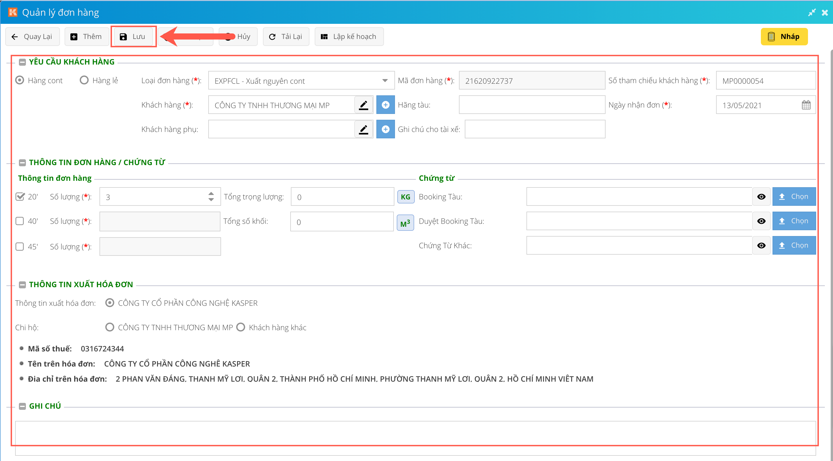 - Đơn hàng vẫn còn ở trạng thái Nháp