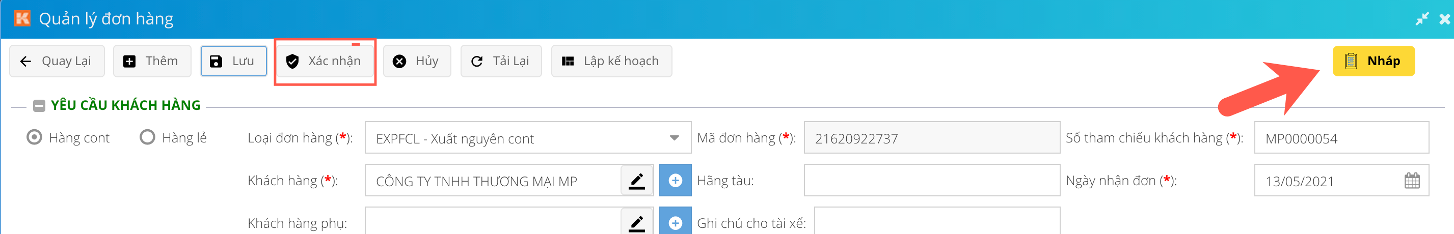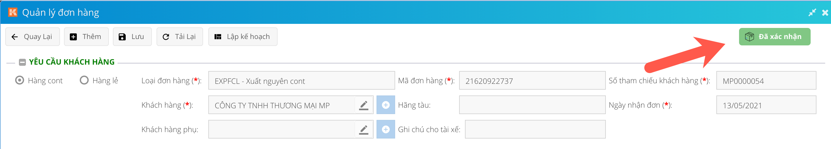 - Tiến hành bấm nút Xác nhận để xác nhận đơn hàng
