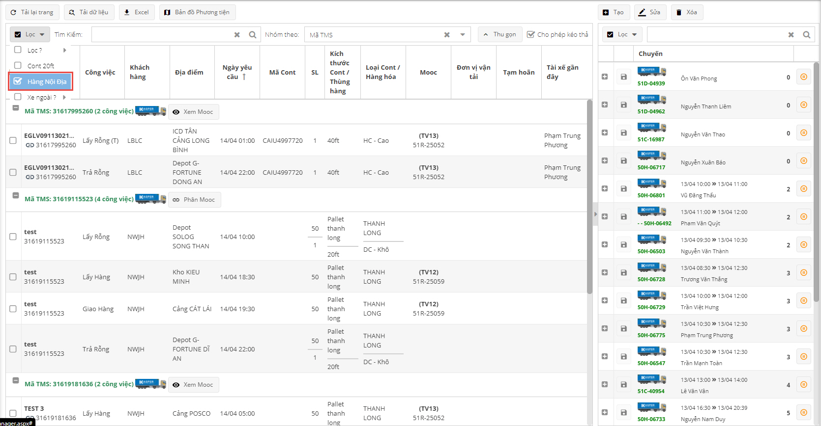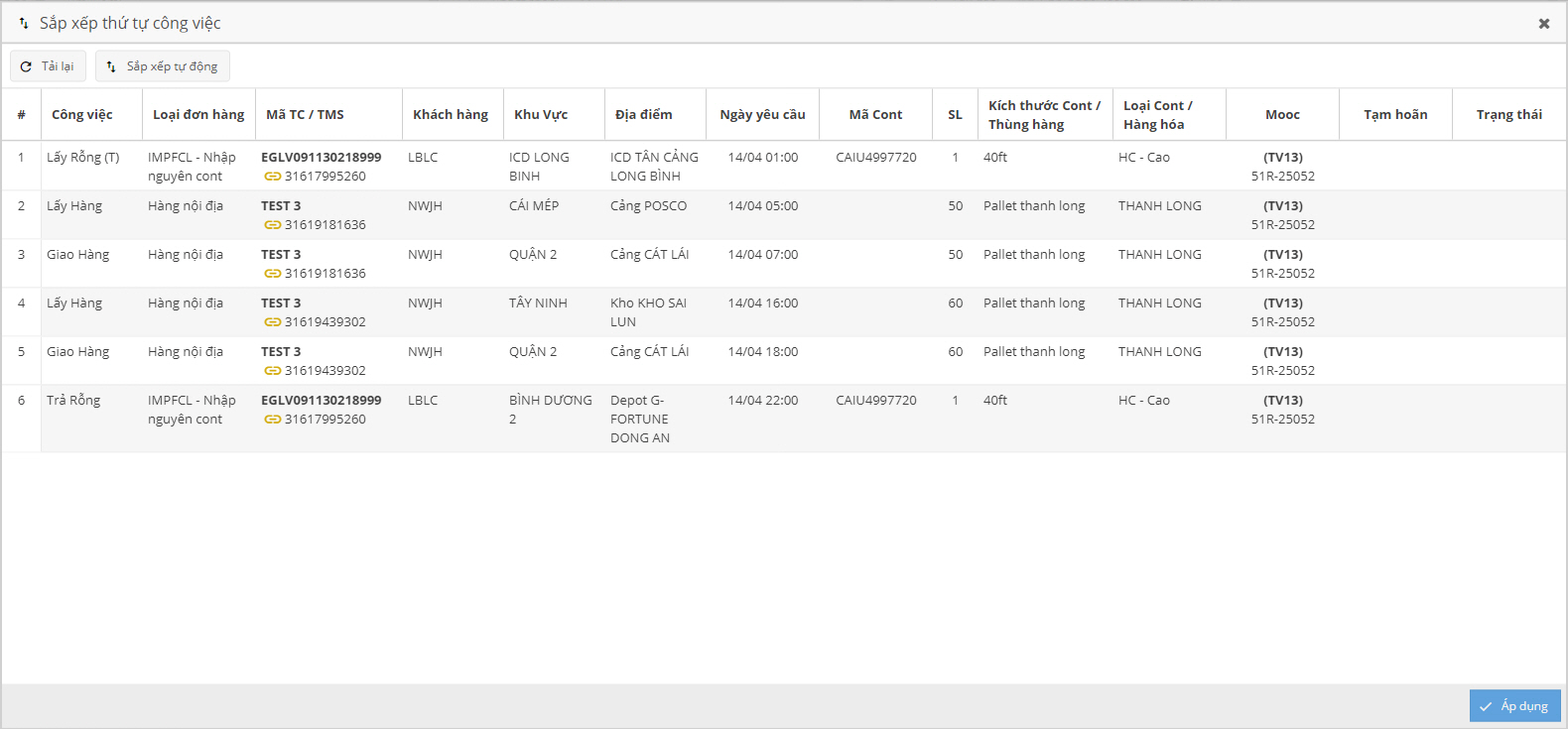- Sau khi kéo công việc được ghép vào cho tài xế → Điều độ có thể áp dụng sắp xếp tự động hoặc sắp xếp lại theo kinh nghiệm của mình.