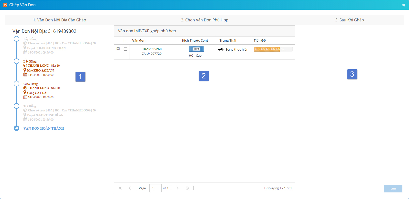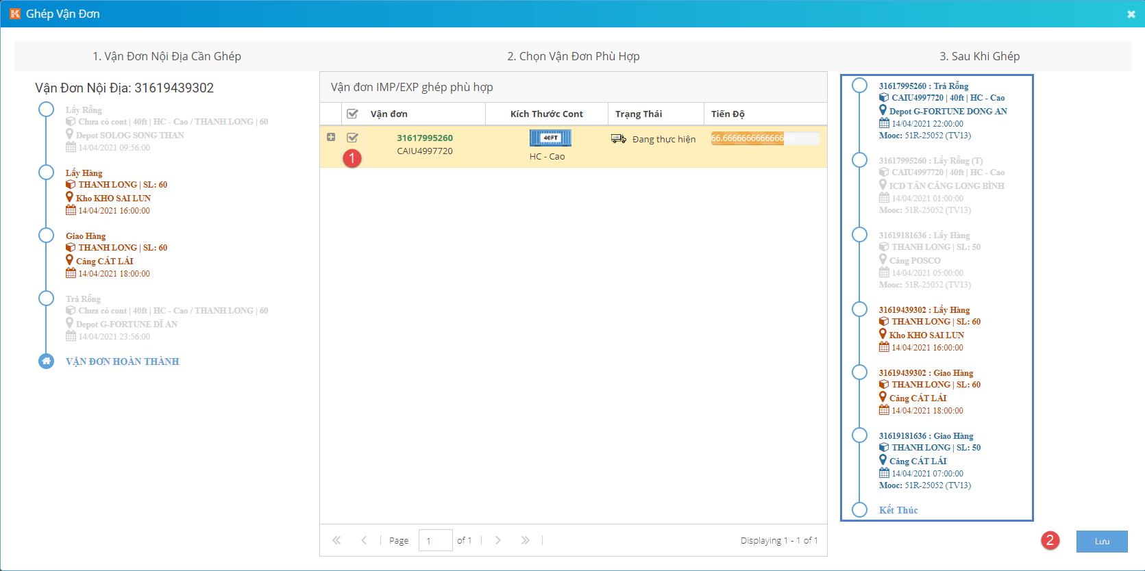 - (1): Thông tin lộ trình của vận đơn nội địa cần ghép