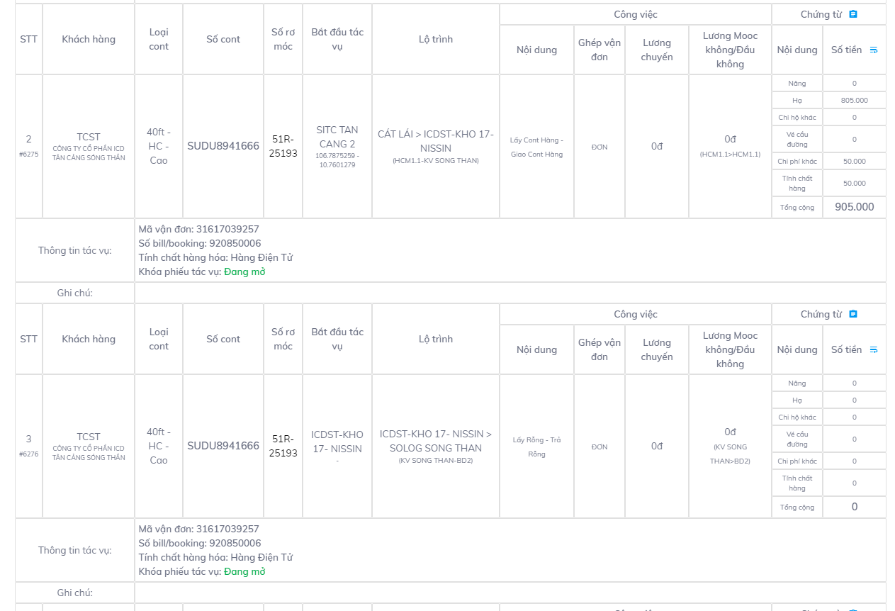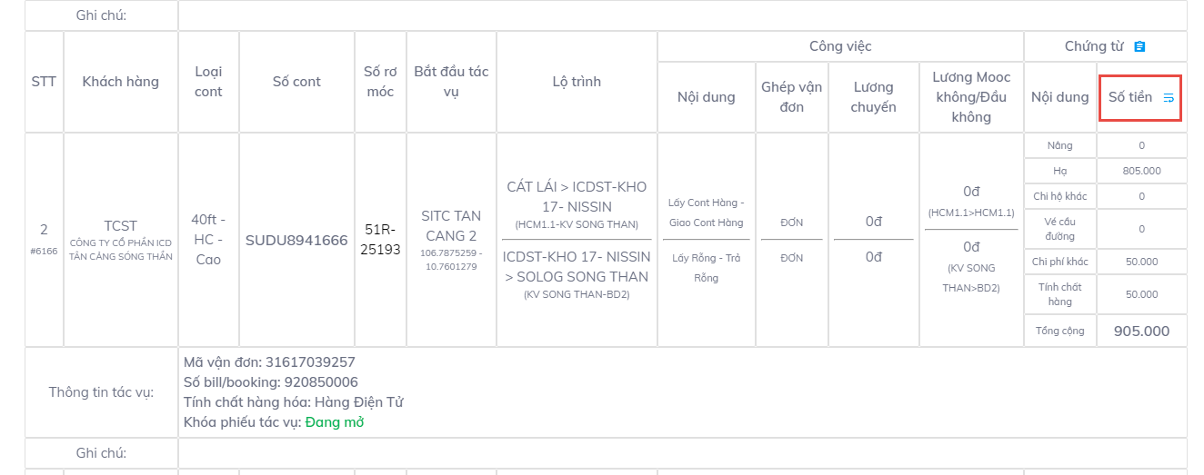 - (1): Danh sách các tác vụ được nhóm trong cùng vận đơn