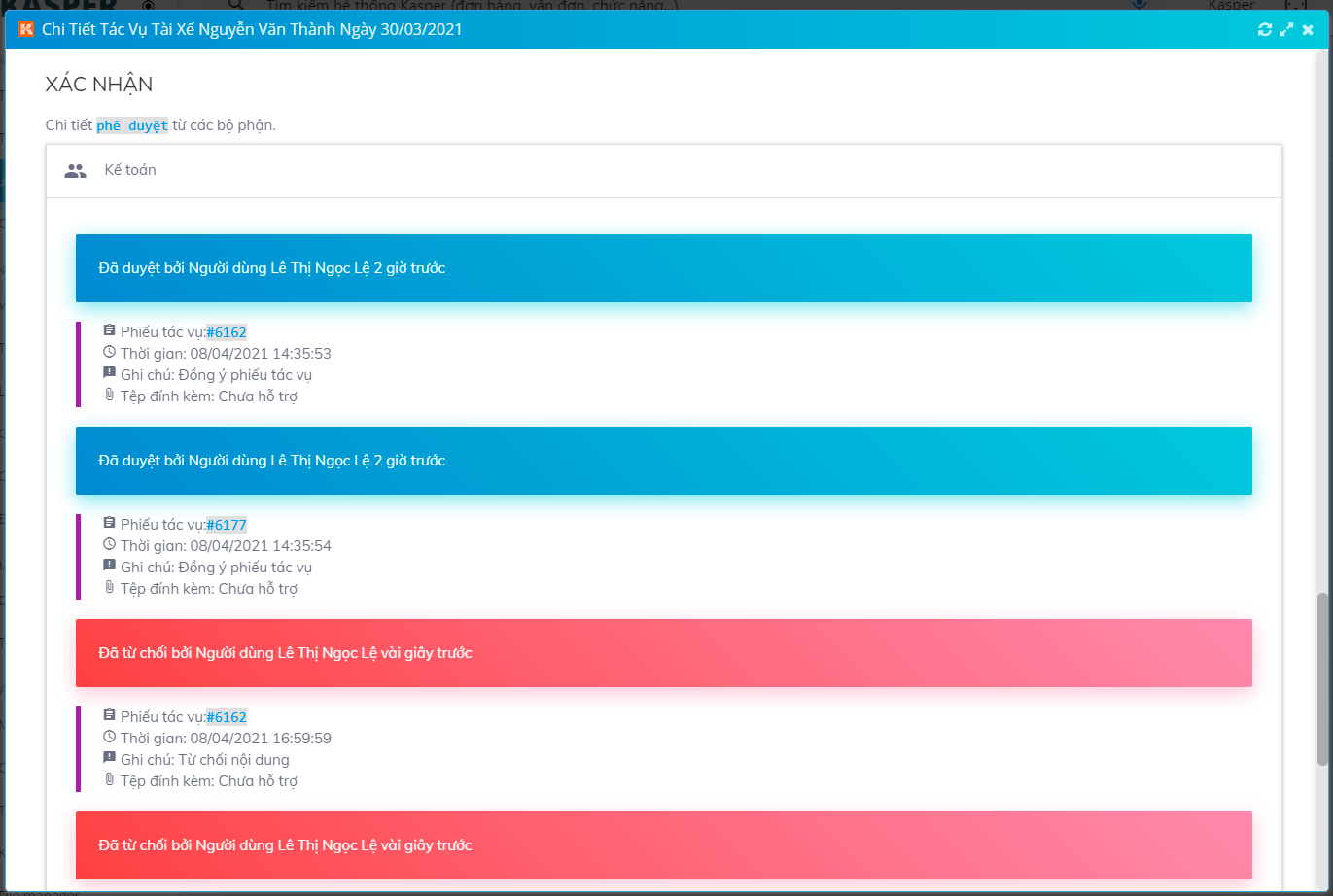 Thực hiện phê duyệt phiếu tác vụ như sau: