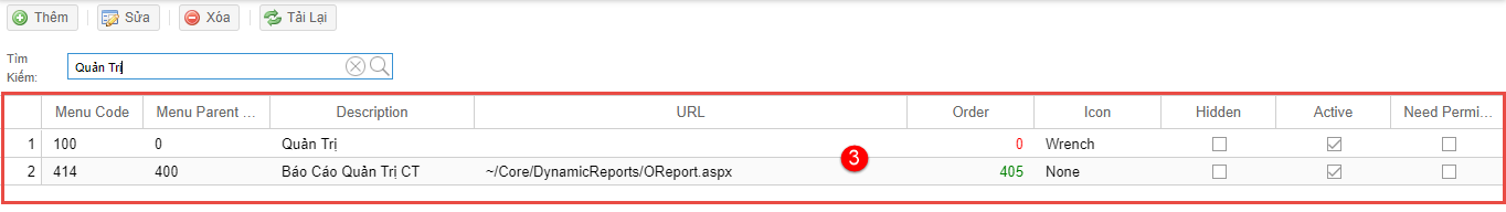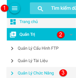 - (1): Tìm kiếm bằng cách nhập tên chức năng, mã chức năng