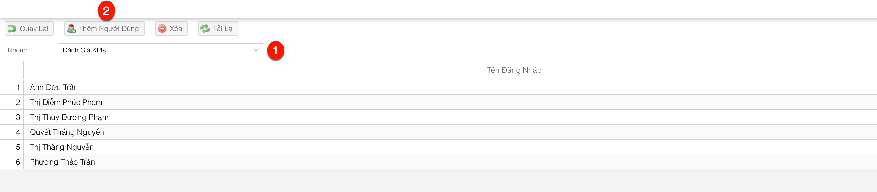 - (6): Nút Thêm – thực hiện thêm mới nhóm Người Dùng