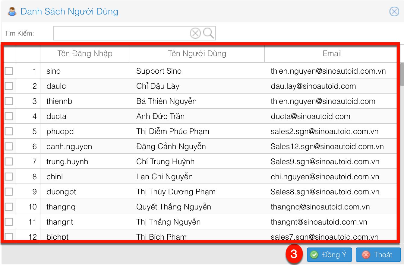 - (3): Chọn Người dùng cần thêm vào nhóm và nhấn Đồng Ý.