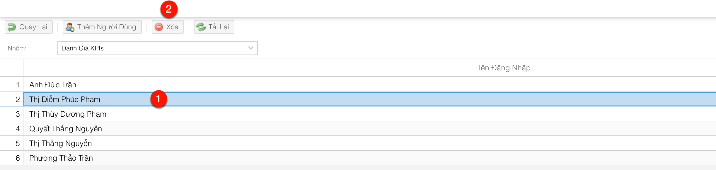 - (1): Chọn Người Dùng cần bỏ khỏi nhóm