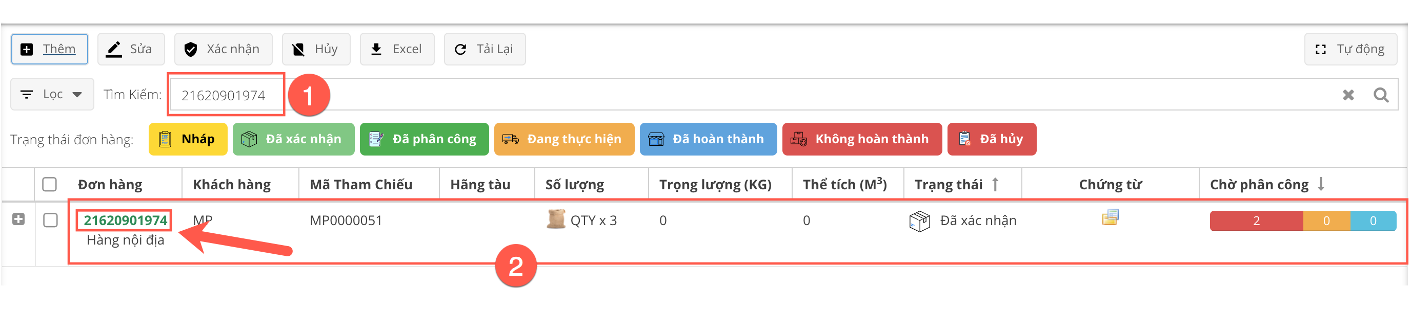 - (2): Ở thanh tìm kiếm, gõ Mã tham chiếu hoặc Mã đơn hàng cần tìm kiếm