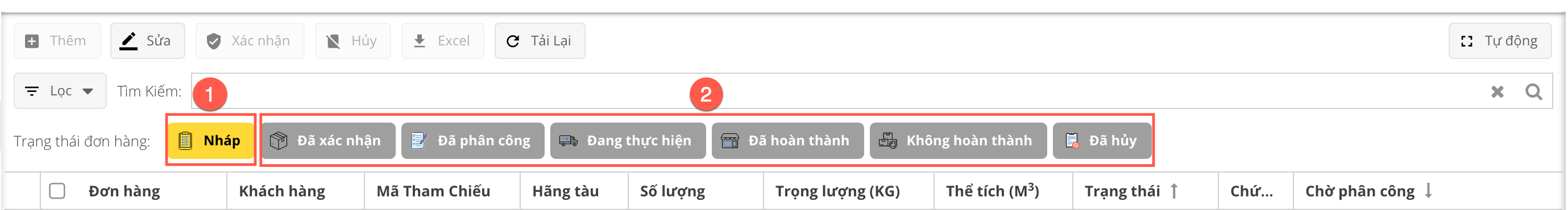 - (2): Cho phép tiếp tục Lọc đơn hàng theo trạng thái