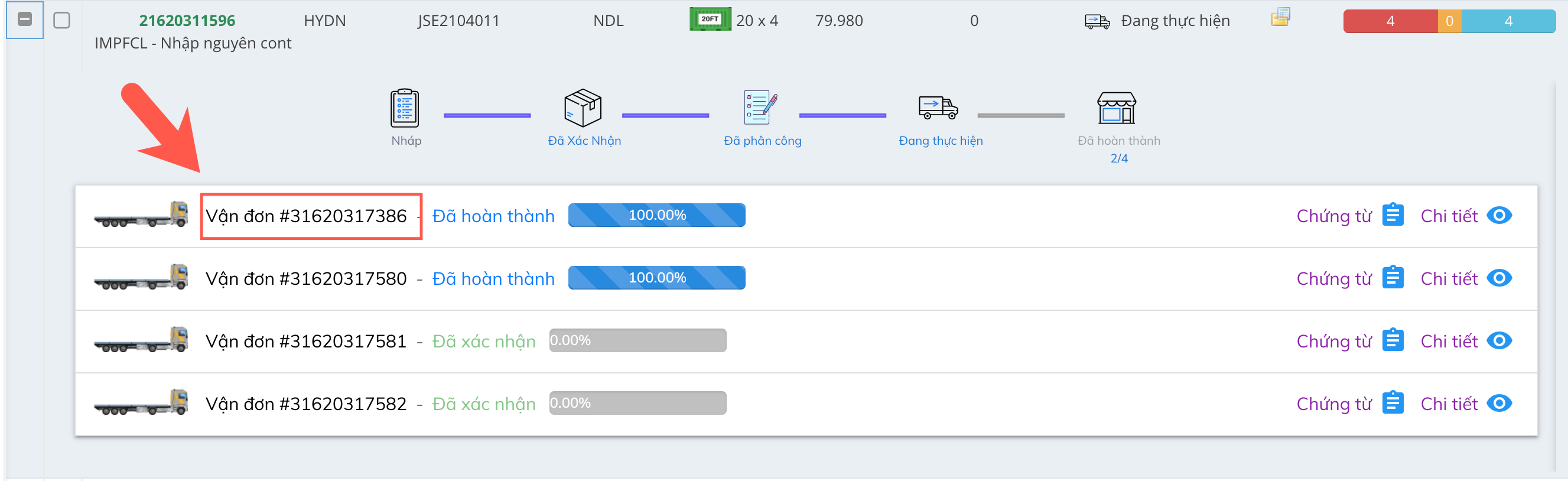 - (4): Các tác vụ công việc theo thứ tự từ trái sang phải của trong một vận đơn