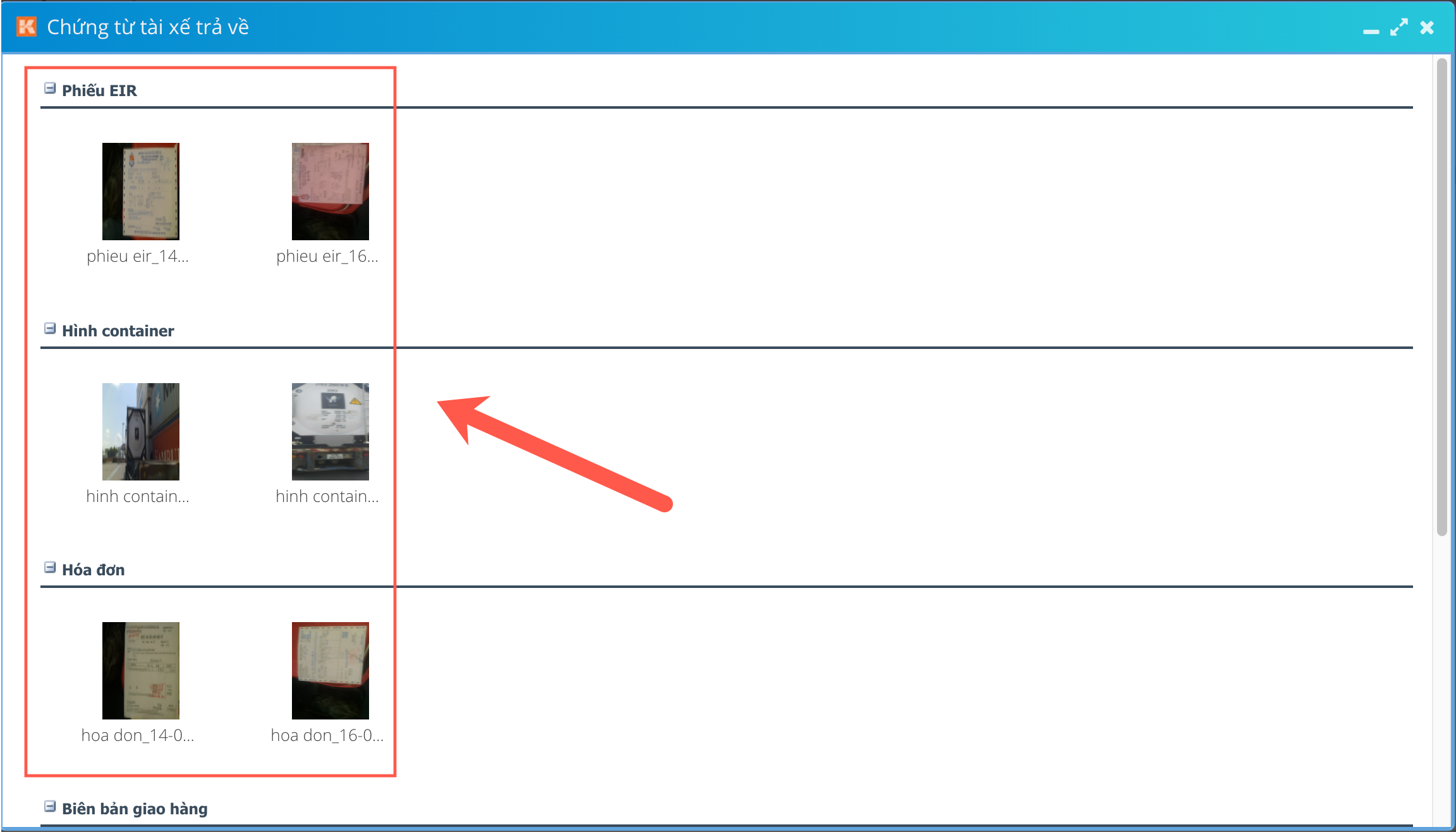- (3): Cho phép xem tất cả hình ảnh chứng từ của đơn hàng đó, màn hình thể hiện chi tiết: